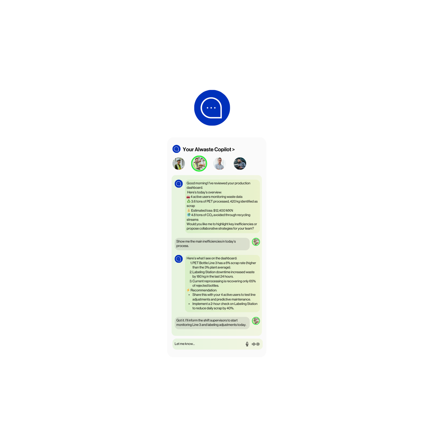 Con un Copiloto de IA que se conecta a tus ERPs o archivos de producción, Eco Hero detecta anomalías, desviaciones de procesos y pérdidas de material en tiempo real, antes de que se generen los residuos.